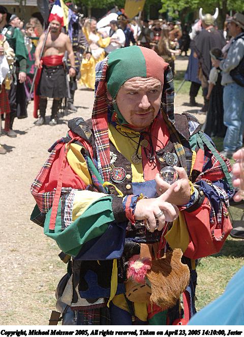 Picture #9: Jester Thumb: 240x320, 41,769 bytes (41K) Small: 480x663, 99,621 bytes (98K), (html file) Large: 1920x2560, 5,277,078 bytes (5.0M), (html file) Copyright, Michael Meissner 2005, All rights reserved Olympus E-1 camera with Olympus 14-54mm f/2.8-3.5 lens f/6.3, ISO 100, 1/320 sec, 40.0mm, auto mode, SHQ, matrix metering, -2 contrast, +2 sharpening 35mm equivalent focal length 80.0mm Taken by Michael Meissner on April 23, 2005 14:10:00 Last modified on June 03, 2005 at 08:34 |