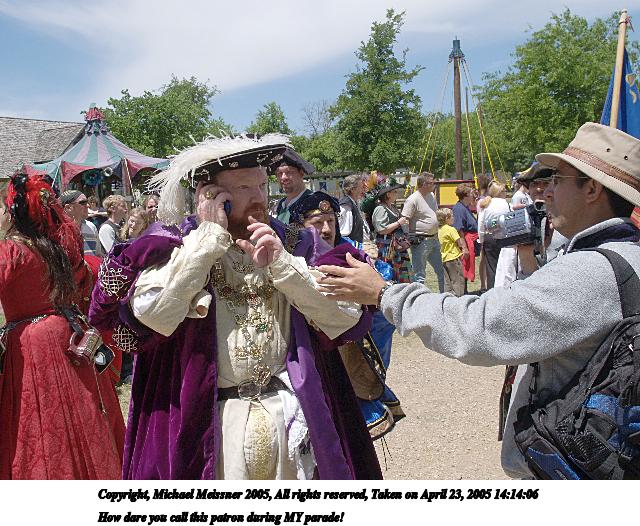 Picture #16: How dare you call this patron during MY parade! Thumb: 320x240, 36,699 bytes (36K) Small: 640x526, 102,698 bytes (101K), (html file) Large: 2560x1920, 5,548,944 bytes (5.3M), (html file) Copyright, Michael Meissner 2005, All rights reserved Olympus E-1 camera with Olympus 14-54mm f/2.8-3.5 lens f/8.0, ISO 100, 1/320 sec, 17.0mm, auto mode, SHQ, matrix metering, -2 contrast, +2 sharpening 35mm equivalent focal length 34.0mm Taken by Michael Meissner on April 23, 2005 14:14:06 Last modified on June 03, 2005 at 08:50 |