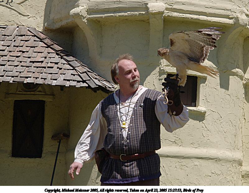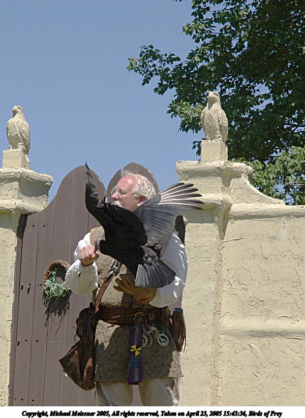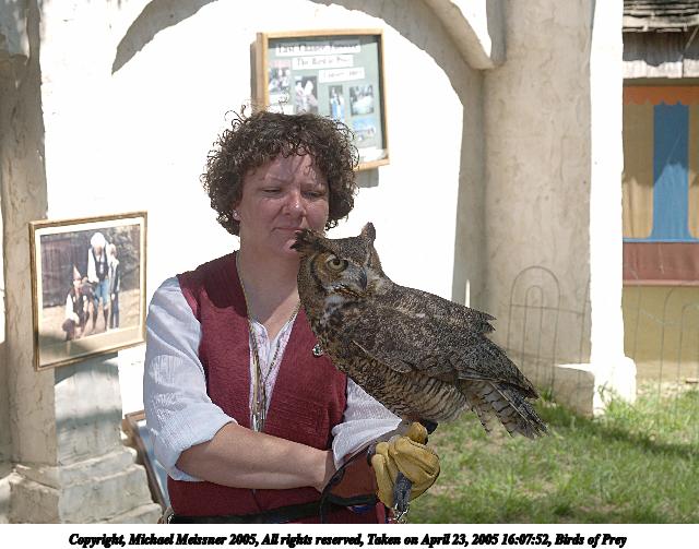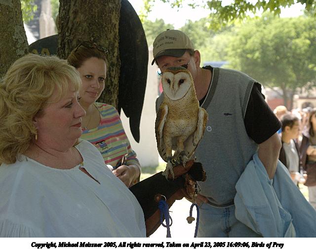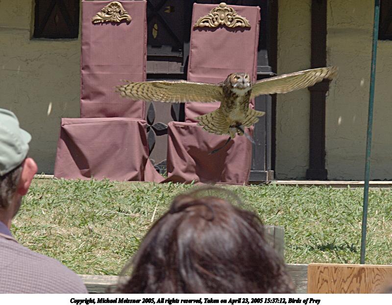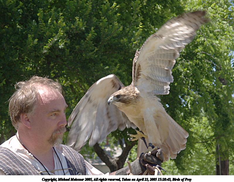 Picture #6: Birds of Prey #6 Thumb: 450x250, 42,893 bytes (42K) Small: 900x523, 98,792 bytes (97K), (html file) Large: 1800x1000, 2,073,342 bytes (2.0M), (html file) Copyright, Michael Meissner 2005, All rights reserved Olympus E-1 camera with Olympus 14-54mm f/2.8-3.5 lens f/8.0, ISO 100, 1/250 sec, 54.0mm, aperture priority, SHQ, matrix metering, -2 contrast, +2 sharpening 35mm equivalent focal length 108.0mm Taken by Michael Meissner on April 23, 2005 15:37:12 Last modified on June 03, 2005 at 21:34 |