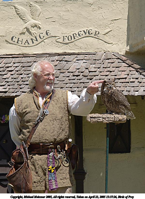 Picture #16: Birds of Prey #16 Thumb: 320x240, 29,484 bytes (29K) Small: 640x503, 63,067 bytes (62K), (html file) Large: 2560x1920, 3,608,226 bytes (3.4M), (html file) Copyright, Michael Meissner 2005, All rights reserved Olympus E-1 camera with Olympus 14-54mm f/2.8-3.5 lens f/3.5, ISO 100, 1/125 sec, 43.0mm, auto mode, SHQ, spot metering, -2 contrast, +2 sharpening 35mm equivalent focal length 86.0mm Taken by Michael Meissner on April 23, 2005 16:07:15 Last modified on June 03, 2005 at 22:11 |