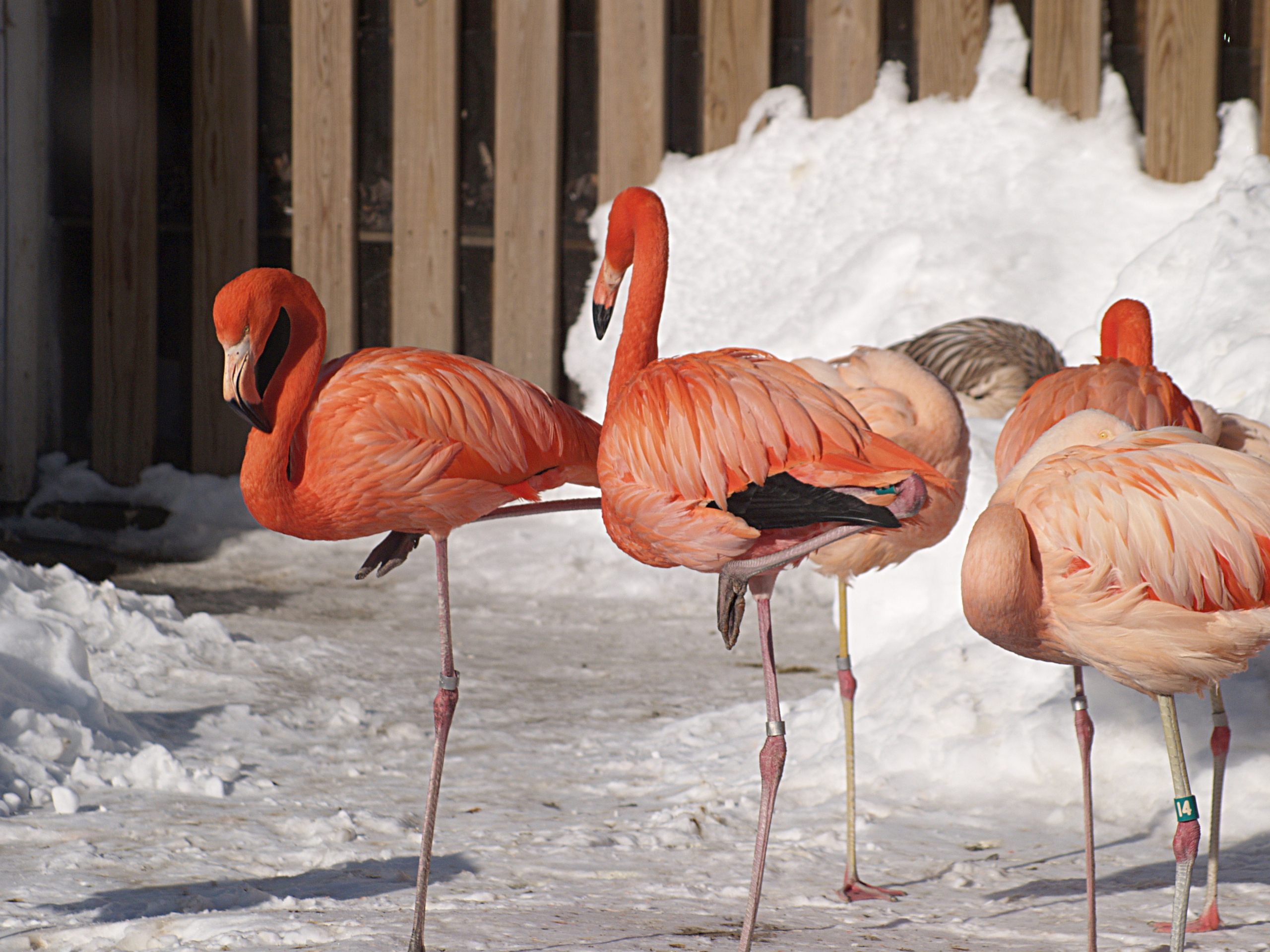 Picture #4: Chilean and Caribbean flamingos Small: 640x503, 63,544 bytes (63K), (html file) Large: 2560x1920, 4,657,908 bytes (4.4M), (html file) Copyright, Michael Meissner 2005, All rights reserved Olympus E-1 camera with Sigma 18-125mm f/3.5-5.6 lens f/7.1, ISO 400, 1/320 sec, 92.0mm, auto mode, SHQ, matrix metering, +1 sharpening 35mm equivalent focal length 184.0mm Extra equipment used: Polarizer Taken by Michael Meissner on January 29, 2005 15:21:12 Last modified on February 01, 2005 at 08:17 |