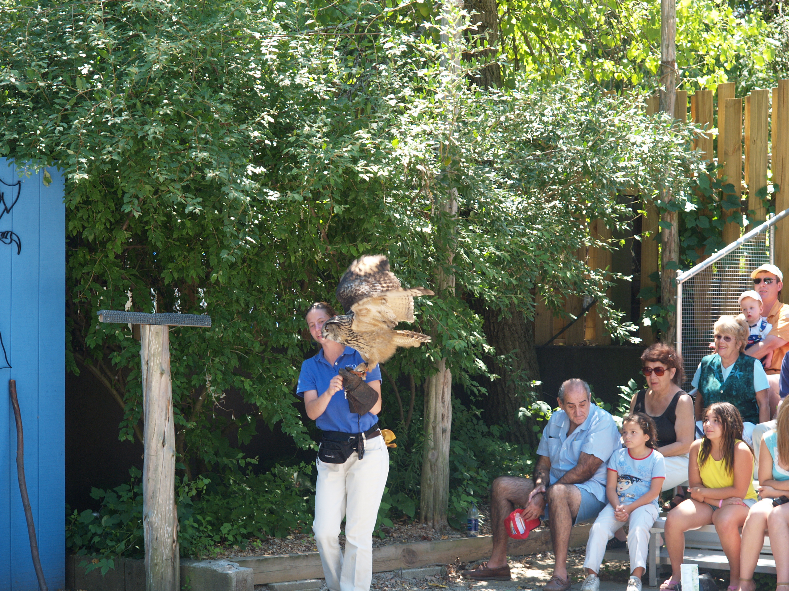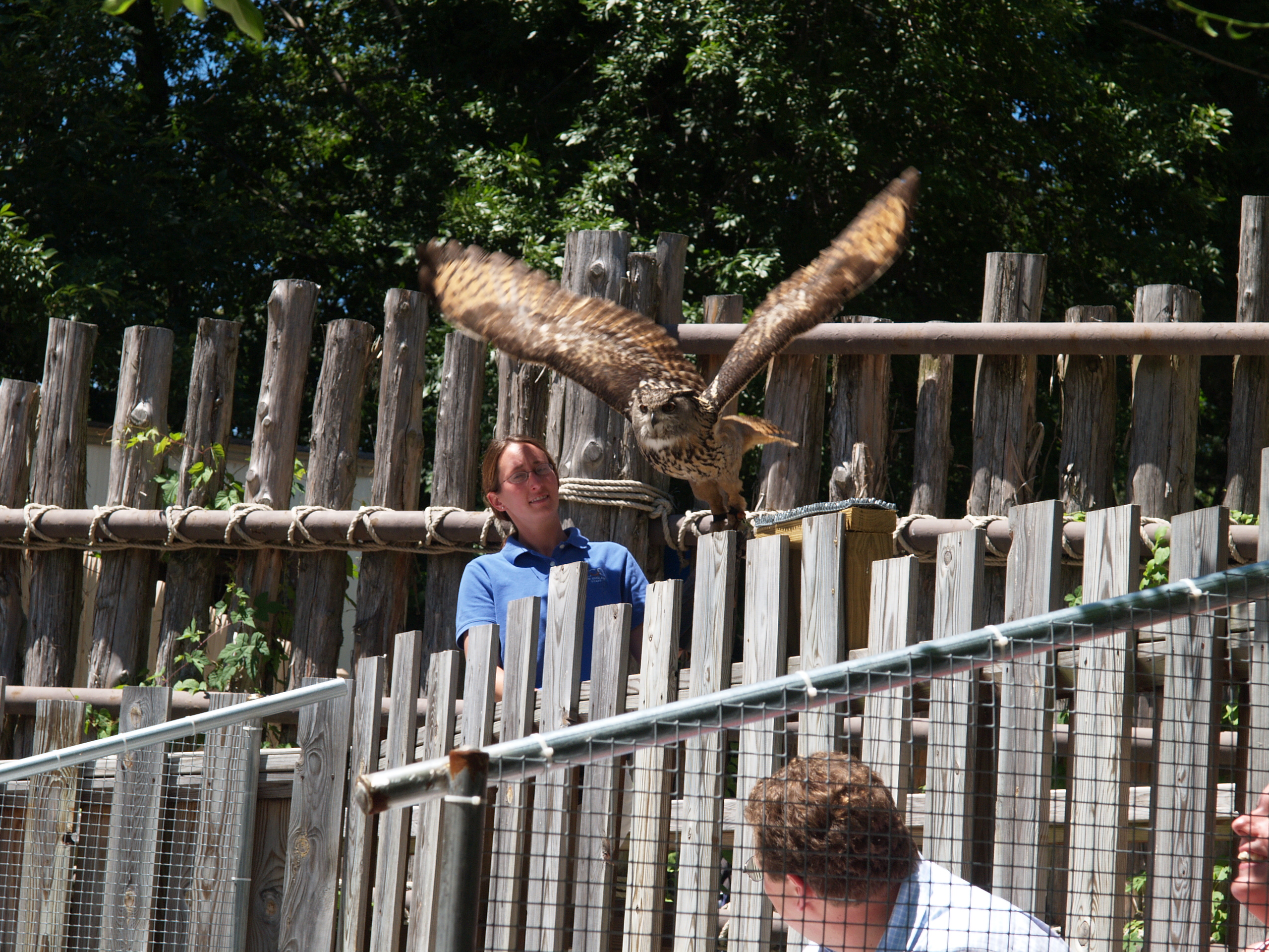 Picture #38: Big eyes Small: 640x503, 90,077 bytes (88K), (html file) Large: 2560x1920, 3,403,633 bytes (3.2M), (html file) Copyright, Michael Meissner 2005, All rights reserved Olympus E-1 camera with Olympus 14-54mm f/2.8-3.5 lens f/5.0, ISO 200, 1/250 sec, 54.0mm, auto mode, SHQ, matrix metering, +2 sharpening 35mm equivalent focal length 108.0mm Taken by Michael Meissner on July 24, 2005 12:53:01 Last modified on July 24, 2005 at 17:38 This was to show that if our eyes were as big as an owl's eyes are in relation to our body, they would be as big as softballs. |