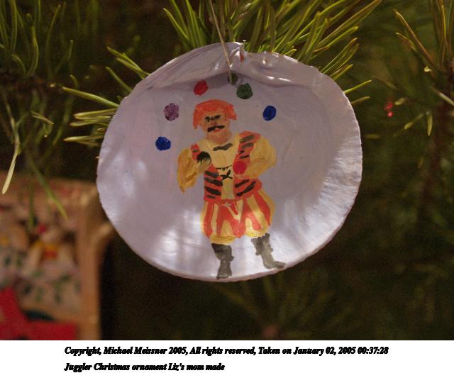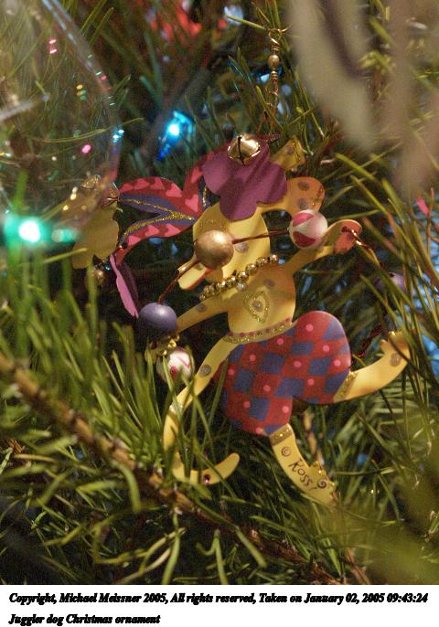 Picture #7: Juggler dog Christmas ornament 480x686, 75,092 bytes (74K), (html file) Copyright, Michael Meissner 2005, All rights reserved Olympus E-1 camera with Olympus 14-54mm f/2.8-3.5 lens f/4.0, ISO 800, 1/25 sec, 44.0mm, aperture priority, SHQ, center weight metering, +1 sharpening, continous focus 35mm equivalent focal length 88.0mm Extra equipment used: handheld Taken by Michael Meissner on January 02, 2005 09:43:24 Last modified on January 02, 2005 at 19:25 |