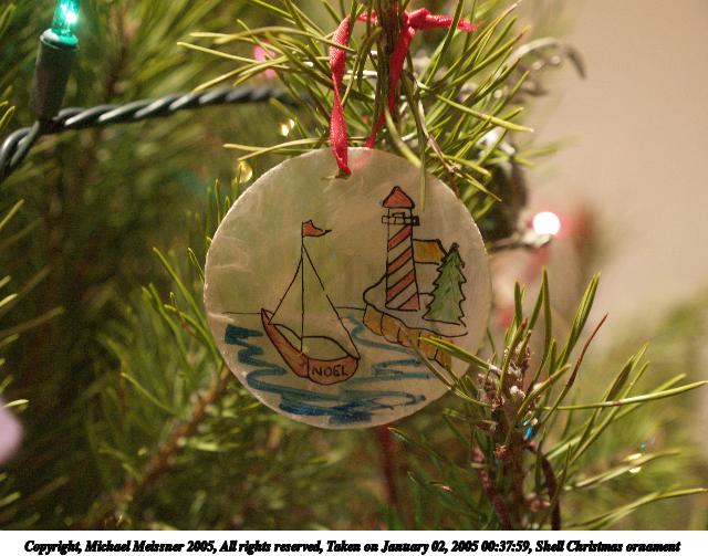 Picture #2: Shell Christmas ornament 640x503, 63,836 bytes (63K), (html file) Copyright, Michael Meissner 2005, All rights reserved Olympus E-1 camera with Olympus 14-54mm f/2.8-3.5 lens f/3.1, ISO 400, 1/20 sec, 28.0mm, auto mode, SHQ, matrix metering, +1 sharpening 35mm equivalent focal length 56.0mm Extra equipment used: handheld Taken by Michael Meissner on January 02, 2005 00:37:59 Last modified on January 02, 2005 at 14:35 |