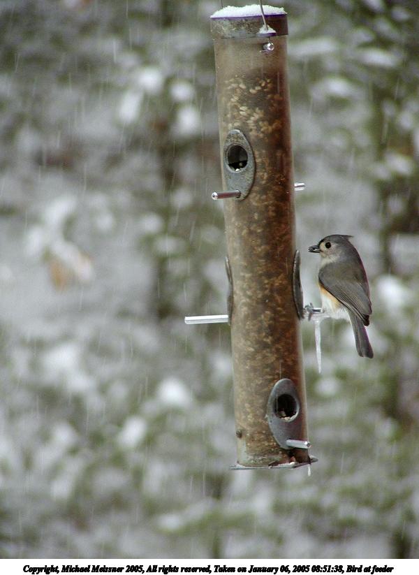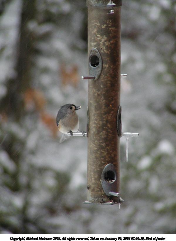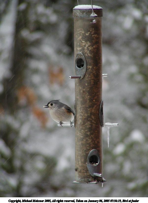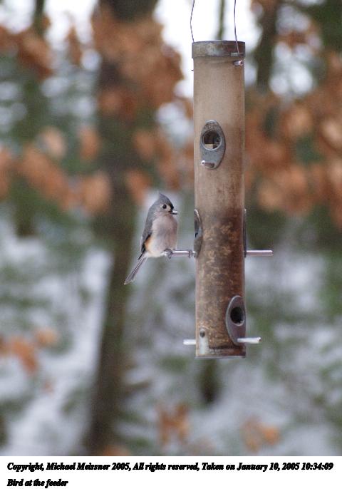 Picture #5: Bird at feeder #4 600x823, 62,306 bytes (61K), (html file) Copyright, Michael Meissner 2005, All rights reserved Olympus C-2100UZ camera f/2.8, ISO 200, 1/60 sec, 39.3mm, auto mode, SHQ, cloudy, matrix metering 35mm equivalent focal length 327.0mm Extra equipment used: a200 lens Taken by Michael Meissner on January 06, 2005 08:50:01 Last modified on January 06, 2005 at 09:02 |