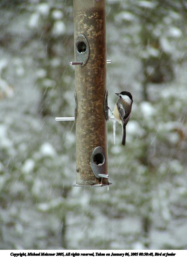 Picture #6: Bird at feeder #5 600x823, 63,639 bytes (63K), (html file) Copyright, Michael Meissner 2005, All rights reserved Olympus C-2100UZ camera f/2.8, ISO 200, 1/60 sec, 39.3mm, auto mode, SHQ, cloudy, matrix metering 35mm equivalent focal length 327.0mm Extra equipment used: a200 lens Taken by Michael Meissner on January 06, 2005 08:50:48 Last modified on January 06, 2005 at 09:04 |