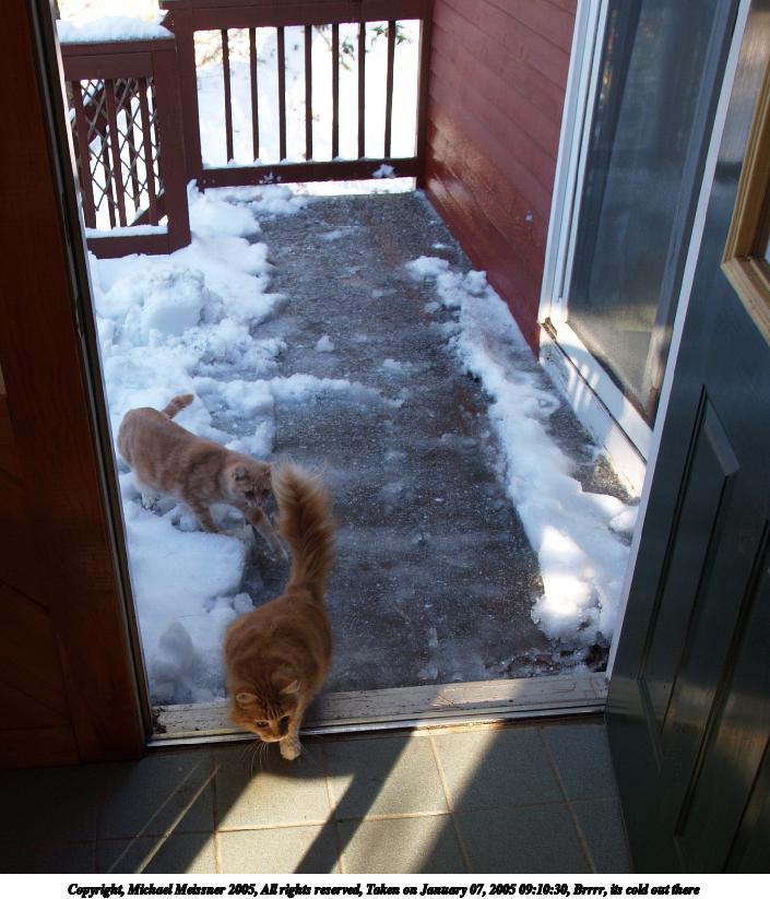Picture #6: Brrrr, its cold out there 705x823, 92,169 bytes (91K), (html file) Copyright, Michael Meissner 2005, All rights reserved Olympus E-1 camera with Olympus 14-54mm f/2.8-3.5 lens f/3.5, ISO 100, 1/60 sec, 14.0mm, auto mode, SHQ, matrix metering, +1 sharpening, auto focus left 35mm equivalent focal length 28.0mm Taken by Michael Meissner on January 07, 2005 09:10:30 Last modified on January 07, 2005 at 21:00 |