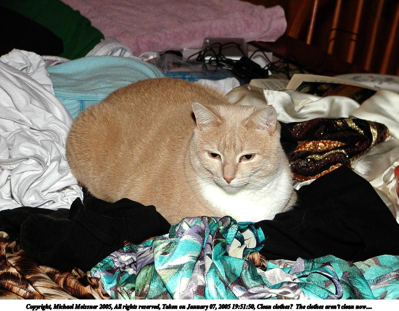 Picture #8: Clean clothes? The clothes aren't clean now.... 800x623, 111,247 bytes (109K), (html file) Copyright, Michael Meissner 2005, All rights reserved Olympus C-2100UZ camera f/2.8, ISO 200, 1/100 sec, 21.5mm, auto mode, SHQ, cloudy, matrix metering 35mm equivalent focal length 119.0mm Taken by Michael Meissner on January 07, 2005 19:51:50 Last modified on January 07, 2005 at 21:10 |