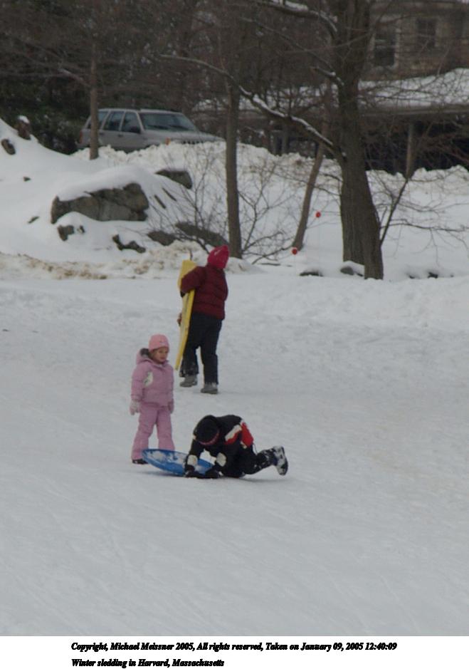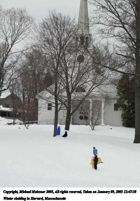 Picture #8: Winter sledding in Harvard, Massachusetts #3 800x623, 38,008 bytes (38K), (html file) Copyright, Michael Meissner 2005, All rights reserved Olympus E-1 camera with Sigma 18-125mm f/3.5-5.6 lens f/9.0, ISO 100, 1/500 sec, 125.0mm, auto mode, SHQ, matrix metering, +1 sharpening, auto focus left 35mm equivalent focal length 250.0mm Taken by Michael Meissner on January 09, 2005 12:43:50 Last modified on January 10, 2005 at 21:44 |