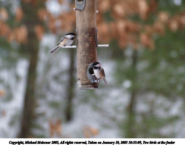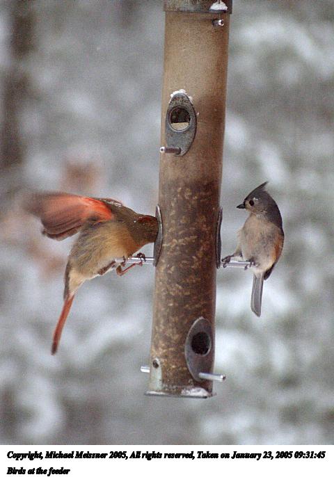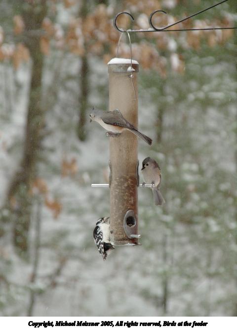 Picture #18: Birds at the feeder #3 480x686, 54,380 bytes (54K), (html file) Copyright, Michael Meissner 2005, All rights reserved Olympus E-1 camera with Sigma 55-200mm f/4.0-5.6 lens f/5.5, ISO 800, 1/400 sec, 168.0mm, shutter priority, SHQ, matrix metering, +1 sharpening 35mm equivalent focal length 337.0mm Taken by Michael Meissner on January 23, 2005 09:31:45 Last modified on January 23, 2005 at 20:12 This was shot through the window. |