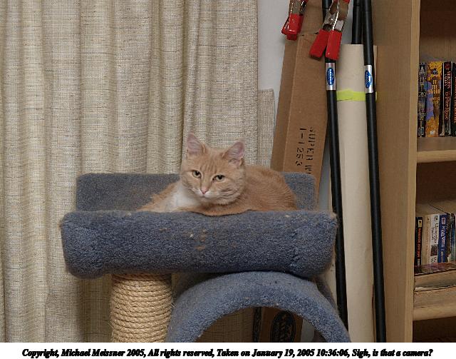 Picture #12: Sigh, is that a camera? 640x503, 74,692 bytes (73K), (html file) Copyright, Michael Meissner 2005, All rights reserved Olympus E-1 camera with Olympus 14-54mm f/2.8-3.5 lens f/5.6, ISO 100, ext. flash, 1/160 sec, 44.0mm, manual mode, SHQ, matrix metering, +1 sharpening 35mm equivalent focal length 88.0mm Extra equipment used: Promaster 5750DX flash Taken by Michael Meissner on January 19, 2005 10:36:06 Last modified on January 20, 2005 at 08:57 |