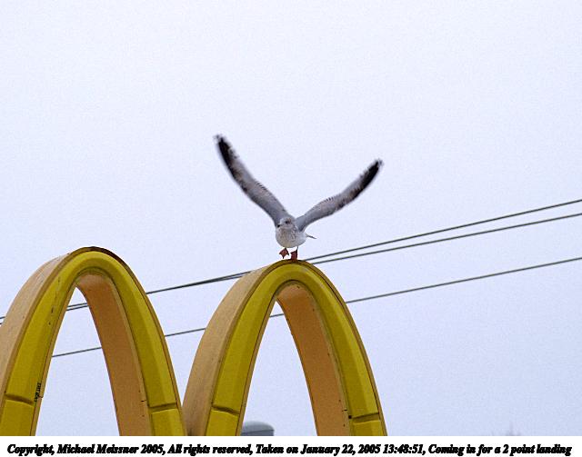 Picture #3: Gull one niner, you are cleared for takeoff 800x623, 37,666 bytes (37K), (html file) Copyright, Michael Meissner 2005, All rights reserved Olympus E-1 camera with Sigma 55-200mm f/4.0-5.6 lens f/6.3, ISO 100, 1/250 sec, 200.0mm, auto mode, SHQ, matrix metering, +1 sharpening 35mm equivalent focal length 401.0mm Taken by Michael Meissner on January 22, 2005 13:54:09 Last modified on January 23, 2005 at 17:19 |