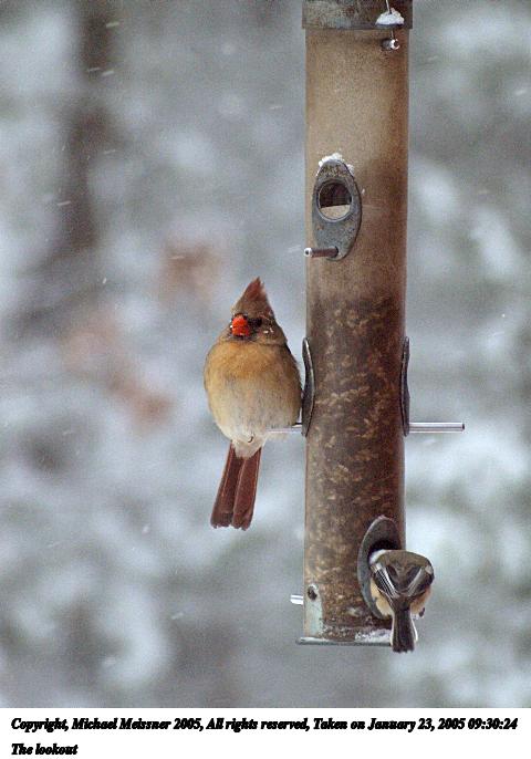 Picture #17: The lookout 480x686, 52,581 bytes (52K), (html file) Copyright, Michael Meissner 2005, All rights reserved Olympus E-1 camera with Sigma 55-200mm f/4.0-5.6 lens f/5.5, ISO 800, 1/400 sec, 168.0mm, shutter priority, SHQ, matrix metering, +1 sharpening 35mm equivalent focal length 337.0mm Taken by Michael Meissner on January 23, 2005 09:30:24 Last modified on January 23, 2005 at 20:12 This was shot through the window. |