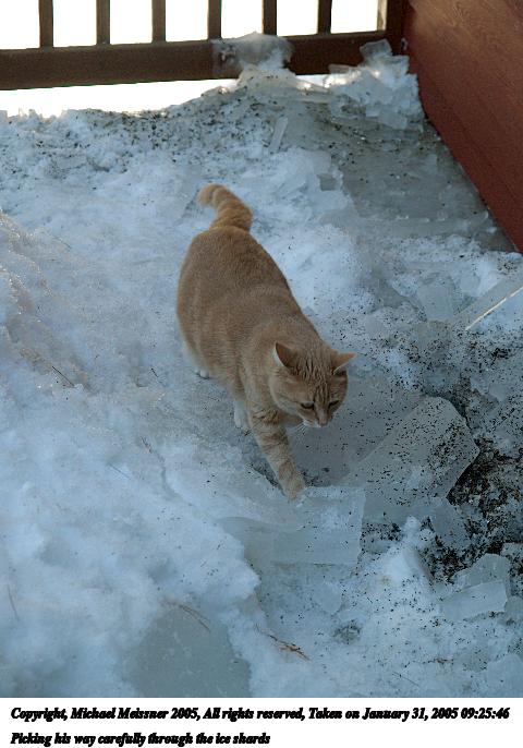 Picture #18: Picking his way carefully through the ice shards 480x686, 64,295 bytes (63K), (html file) Copyright, Michael Meissner 2005, All rights reserved Olympus E-1 camera with Olympus 14-54mm f/2.8-3.5 lens f/4.0, ISO 100, 1/160 sec, 54.0mm, auto mode, SHQ, matrix metering, +1 sharpening 35mm equivalent focal length 108.0mm Taken by Michael Meissner on January 31, 2005 09:25:46 Last modified on January 31, 2005 at 13:08 |