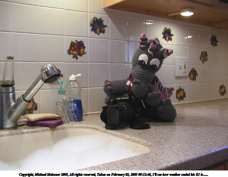 Picture #3: I'll see how weather sealed his E1 is...... #3 800x623, 71,456 bytes (70K), (html file) Copyright, Michael Meissner 2005, All rights reserved Olympus C-2100UZ camera f/2.8, ISO 100, 1/20 sec, 7.0mm, auto mode, SHQ, matrix metering 35mm equivalent focal length 39.0mm Extra equipment used: tripod Taken by Michael Meissner on February 02, 2005 09:12:46 Last modified on February 02, 2005 at 09:32 No E-1's were harmed in the making of this picture. |
