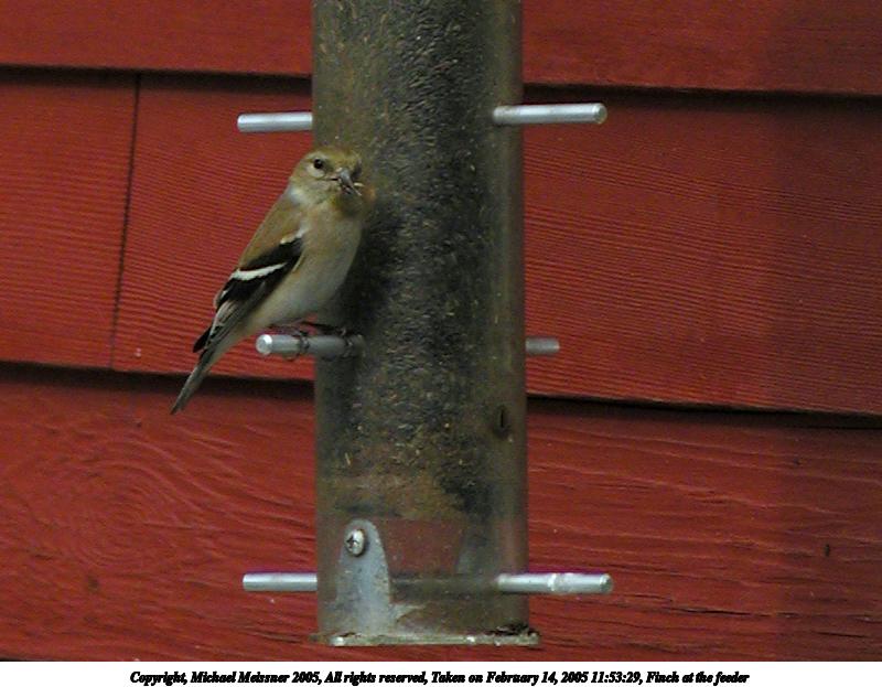Picture #3: Finch at the feeder #2 800x623, 70,791 bytes (70K), (html file) Copyright, Michael Meissner 2005, All rights reserved Olympus C-2100UZ camera f/2.8, ISO 100, 1/800 sec, 41.3mm, shutter priority, SHQ, matrix metering 35mm equivalent focal length 229.0mm Extra equipment used: Shot through window glass, USB remote control Taken by Michael Meissner on February 14, 2005 11:53:29 Last modified on February 17, 2005 at 10:04 |