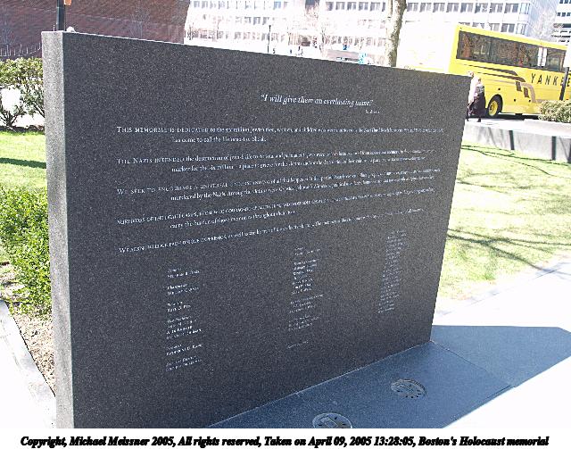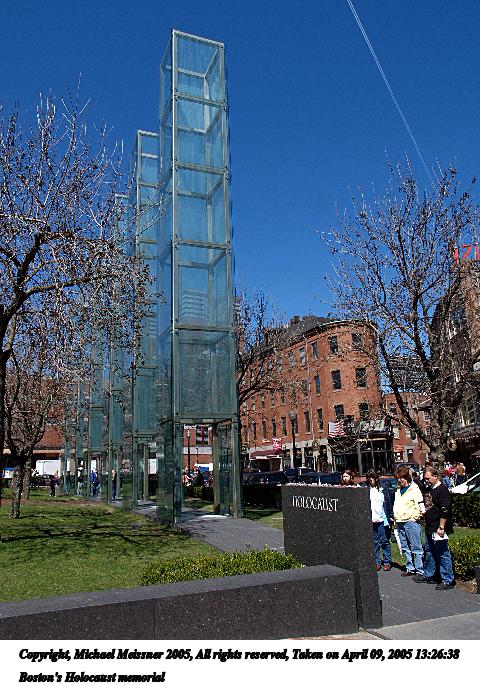 Picture #91: Boston's Holocaust memorial #2 480x686, 105,623 bytes (104K), (html file) Copyright, Michael Meissner 2005, All rights reserved Olympus E-1 camera with Olympus 14-54mm f/2.8-3.5 lens f/10.0, ISO 100, 1/200 sec, 20.0mm, aperture priority, SHQ, matrix metering, -2 contrast, +2 sharpening 35mm equivalent focal length 40.0mm Taken by Michael Meissner on April 09, 2005 13:27:25 Last modified on April 10, 2005 at 08:29 |