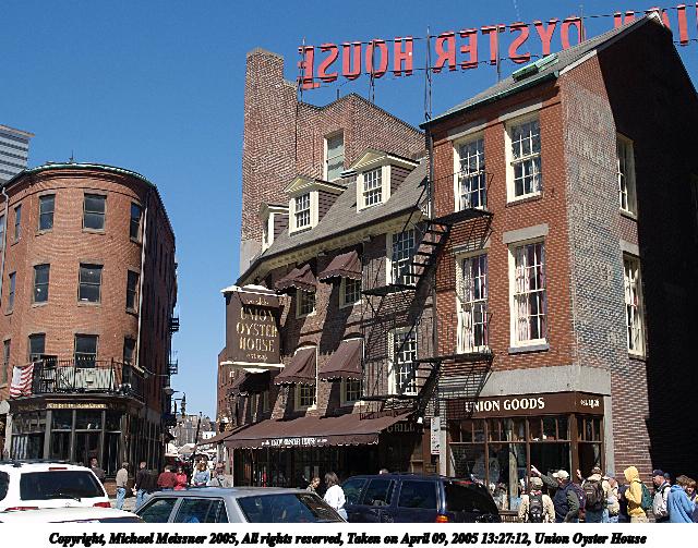 Picture #89: Union Oyster House 640x503, 106,212 bytes (104K), (html file) Copyright, Michael Meissner 2005, All rights reserved Olympus E-1 camera with Olympus 14-54mm f/2.8-3.5 lens f/10.0, ISO 100, 1/125 sec, 23.0mm, aperture priority, SHQ, matrix metering, -2 contrast, +2 sharpening 35mm equivalent focal length 46.0mm Taken by Michael Meissner on April 09, 2005 13:27:12 Last modified on April 10, 2005 at 09:12 |