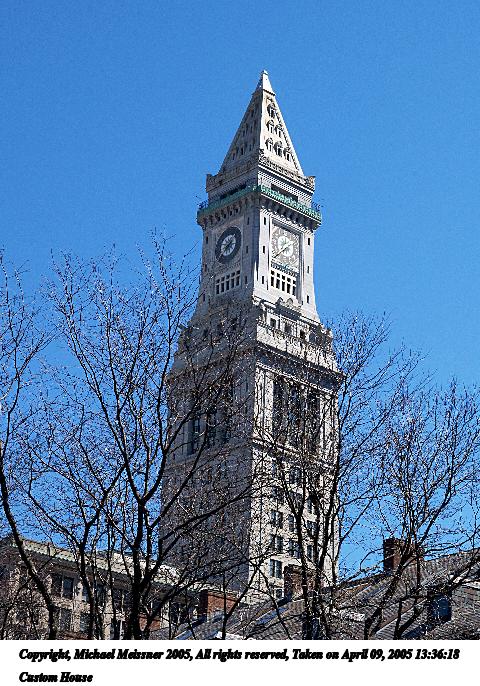 Picture #85: Custom House 480x686, 117,304 bytes (115K), (html file) Copyright, Michael Meissner 2005, All rights reserved Olympus E-1 camera with Olympus 14-54mm f/2.8-3.5 lens f/8.0, ISO 200, 1/500 sec, 40.0mm, auto mode, SHQ, matrix metering, -2 contrast, +2 sharpening 35mm equivalent focal length 80.0mm Taken by Michael Meissner on April 09, 2005 13:36:18 Last modified on April 12, 2005 at 07:35 |