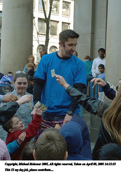 Picture #71: If she can contribute a $5, maybe everybody else can too 640x526, 84,884 bytes (83K), (html file) Copyright, Michael Meissner 2005, All rights reserved Olympus E-1 camera with Olympus 14-54mm f/2.8-3.5 lens f/4.0, ISO 400, 1/160 sec, 54.0mm, auto mode, SHQ, matrix metering, -2 contrast, +2 sharpening 35mm equivalent focal length 108.0mm Taken by Michael Meissner on April 09, 2005 14:05:33 Last modified on April 12, 2005 at 09:07 |