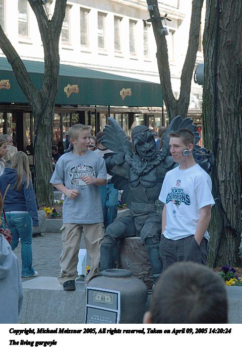Picture #65: The living gargoyle 480x686, 79,036 bytes (78K), (html file) Copyright, Michael Meissner 2005, All rights reserved Olympus E-1 camera with Olympus 14-54mm f/2.8-3.5 lens f/5.0, ISO 400, 1/250 sec, 54.0mm, auto mode, SHQ, matrix metering, -2 contrast, +2 sharpening 35mm equivalent focal length 108.0mm Taken by Michael Meissner on April 09, 2005 14:20:24 Last modified on April 12, 2005 at 09:43 |