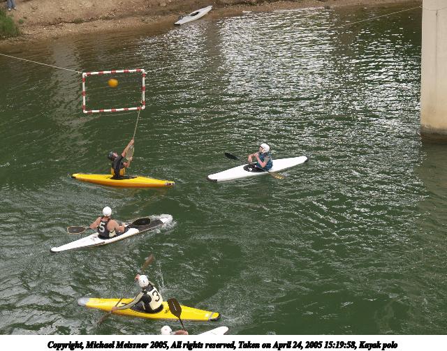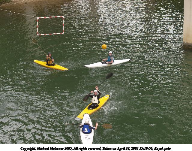 Picture #53: Kayak polo #4 640x503, 102,494 bytes (101K), (html file) Copyright, Michael Meissner 2005, All rights reserved Olympus E-1 camera with Olympus 14-54mm f/2.8-3.5 lens f/4.5, ISO 100, 1/200 sec, 54.0mm, auto mode, SHQ, matrix metering, -2 contrast, +2 sharpening, continous focus 35mm equivalent focal length 108.0mm Taken by Michael Meissner on April 24, 2005 15:20:48 Last modified on April 24, 2005 at 23:25 |
