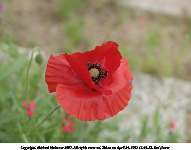 Picture #49: Red flower #2 640x503, 35,819 bytes (35K), (html file) Copyright, Michael Meissner 2005, All rights reserved Olympus E-1 camera with Olympus 14-54mm f/2.8-3.5 lens f/3.5, ISO 200, 1/80 sec, 31.0mm, auto mode, SHQ, matrix metering, -2 contrast, +2 sharpening, continous focus 35mm equivalent focal length 62.0mm Taken by Michael Meissner on April 24, 2005 15:30:22 Last modified on April 25, 2005 at 07:17 |