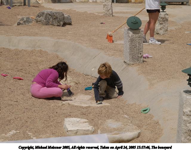 Picture #42: The boneyard 640x503, 78,602 bytes (77K), (html file) Copyright, Michael Meissner 2005, All rights reserved Olympus E-1 camera with Olympus 14-54mm f/2.8-3.5 lens f/8.0, ISO 100, 1/640 sec, 54.0mm, auto mode, SHQ, matrix metering, -2 contrast, +2 sharpening, continous focus 35mm equivalent focal length 108.0mm Taken by Michael Meissner on April 24, 2005 15:57:46 Last modified on April 26, 2005 at 07:59 The nature center in Austin has a boneyard sandpit that allows kids to 'discover' buried fossils that I thought was neat. |