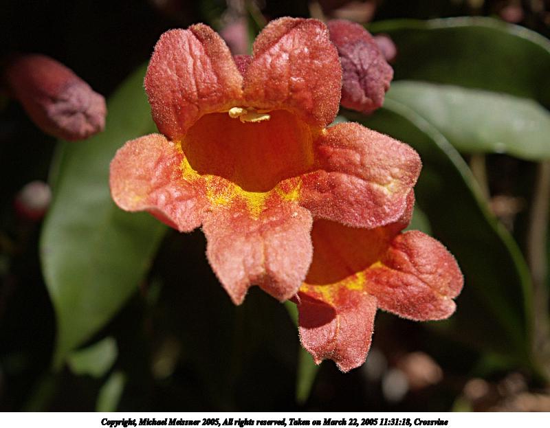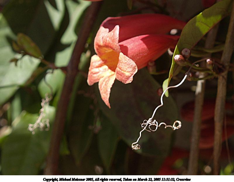 Picture #35: Crossvine #2 800x623, 61,597 bytes (61K), (html file) Copyright, Michael Meissner 2005, All rights reserved Olympus E-1 camera with Olympus 14-54mm f/2.8-3.5 lens f/4.0, ISO 100, 1/125 sec, 43.0mm, auto mode, SHQ, matrix metering, -2 contrast, +2 sharpening, continous focus 35mm equivalent focal length 86.0mm Extra equipment used: Polarizer Taken by Michael Meissner on March 22, 2005 11:31:32 Last modified on April 28, 2005 at 21:51 |