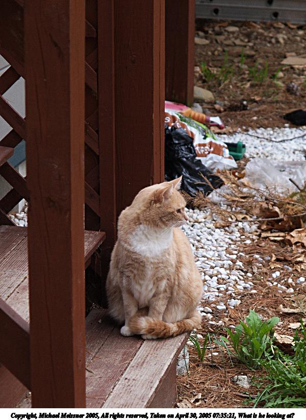 Picture #21: What is he looking at? 600x823, 120,180 bytes (118K), (html file) Copyright, Michael Meissner 2005, All rights reserved Olympus E-1 camera with Olympus 14-54mm f/2.8-3.5 lens f/3.5, ISO 200, 1/80 sec, 52.0mm, auto mode, SHQ, matrix metering, -2 contrast, +2 sharpening 35mm equivalent focal length 104.0mm Taken by Michael Meissner on April 30, 2005 07:35:21 Last modified on May 01, 2005 at 08:28 |