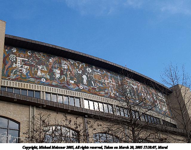 Picture #7: Mural 640x503, 96,378 bytes (95K), (html file) Copyright, Michael Meissner 2005, All rights reserved Olympus E-1 camera with Olympus 14-54mm f/2.8-3.5 lens f/5.0, ISO 100, 1/125 sec, 25.0mm, auto mode, SHQ, matrix metering, bias 0.3, -2 contrast, +2 sharpening, manual focus 35mm equivalent focal length 50.0mm Extra equipment used: Polarizer filter Taken by Michael Meissner on March 20, 2005 17:38:07 Last modified on May 01, 2005 at 22:50 |