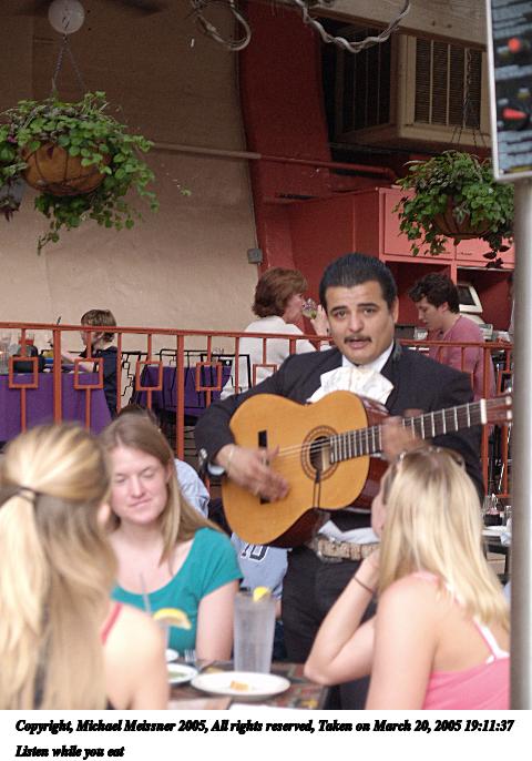 Picture #4: Listen while you eat 480x686, 67,644 bytes (67K), (html file) Copyright, Michael Meissner 2005, All rights reserved Olympus E-1 camera with Olympus 14-54mm f/2.8-3.5 lens f/3.3, ISO 200, 1/40 sec, 37.0mm, auto mode, SHQ, matrix metering, bias 0.3, -2 contrast, +2 sharpening, auto + manual focus 35mm equivalent focal length 74.0mm Extra equipment used: Polarizer filter Taken by Michael Meissner on March 20, 2005 19:11:37 Last modified on May 01, 2005 at 22:56 |