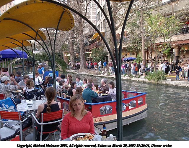 Picture #3: Dinner cruise 640x503, 124,659 bytes (122K), (html file) Copyright, Michael Meissner 2005, All rights reserved Olympus E-1 camera with Olympus 14-54mm f/2.8-3.5 lens f/2.8, ISO 200, 1/30 sec, 14.0mm, auto mode, SHQ, matrix metering, bias 0.3, -2 contrast, +2 sharpening, auto + manual focus 35mm equivalent focal length 28.0mm Extra equipment used: Polarizer filter Taken by Michael Meissner on March 20, 2005 19:26:51 Last modified on May 01, 2005 at 22:58 |