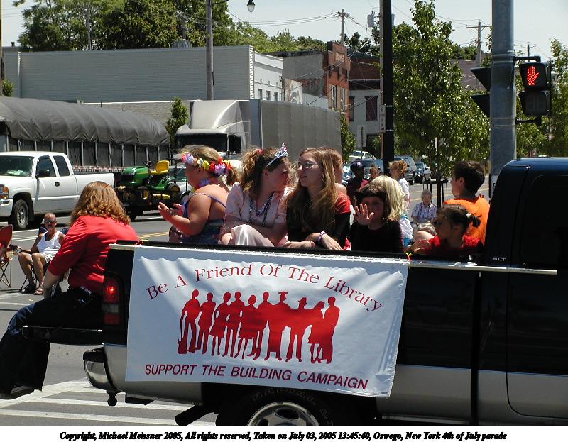 Picture #10: Oswego, New York 4th of July parade #7 800x623, 107,793 bytes (106K), (html file) Copyright, Michael Meissner 2005, All rights reserved Olympus C-2100UZ camera f/6.3, ISO 100, 1/650 sec, 25.2mm, auto mode, SHQ, cloudy, matrix metering 35mm equivalent focal length 140.0mm Taken by Michael Meissner on July 03, 2005 13:28:57 Last modified on July 03, 2005 at 20:17 |