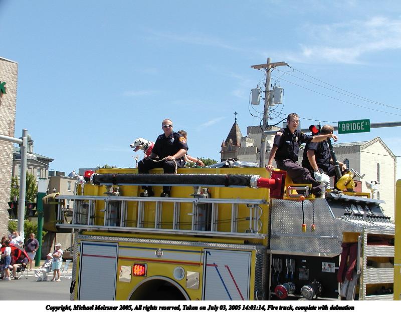Picture #29: Fire truck, complete with dalmation 800x623, 96,573 bytes (95K), (html file) Copyright, Michael Meissner 2005, All rights reserved Olympus C-2100UZ camera f/5.6, ISO 100, 1/400 sec, 12.7mm, auto mode, SHQ, cloudy, matrix metering 35mm equivalent focal length 70.0mm Taken by Michael Meissner on July 03, 2005 14:01:14 Last modified on July 03, 2005 at 20:17 |