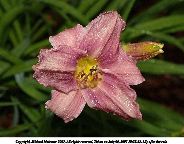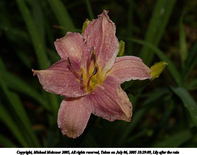 Picture #5: Lily after the rain #2 640x503, 54,201 bytes (53K), (html file) Copyright, Michael Meissner 2005, All rights reserved Olympus E-1 camera with Olympus 50mm f/2.0 lens f/5.6, ISO 100, ext. flash, 1/100 sec, 50.0mm, aperture priority, SHQ, matrix metering, -2 contrast, +2 sharpening 35mm equivalent focal length 100.0mm Extra equipment used: Promaster 5750DX flash Taken by Michael Meissner on July 06, 2005 18:29:09 Last modified on July 07, 2005 at 22:44 |