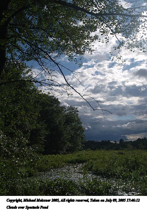 Picture #1: Clouds over Spectacle Pond 640x503, 96,438 bytes (95K), (html file) Copyright, Michael Meissner 2005, All rights reserved Olympus E-1 camera with Olympus 14-54mm f/2.8-3.5 lens f/5.6, ISO 100, 1/160 sec, 14.0mm, auto mode, SHQ, spot metering, -2 contrast, +2 sharpening, Exposure bracketing (shot 1) 35mm equivalent focal length 28.0mm Extra equipment used: Polarizer Taken by Michael Meissner on July 09, 2005 17:44:28 Last modified on July 10, 2005 at 12:43 |