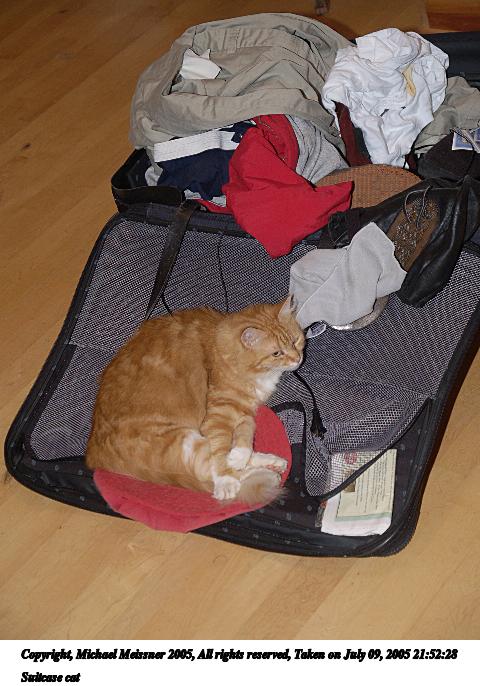 Picture #1: Suitcase cat 480x686, 76,934 bytes (76K), (html file) Copyright, Michael Meissner 2005, All rights reserved Olympus E-1 camera with Olympus 14-54mm f/2.8-3.5 lens f/3.2, ISO 100, ext. flash, 1/60 sec, 35.0mm, auto mode, SHQ, matrix metering, -2 contrast, +2 sharpening 35mm equivalent focal length 70.0mm Extra equipment used: Promaster 5750DX flash Taken by Michael Meissner on July 09, 2005 21:52:28 Last modified on July 10, 2005 at 12:53 |
