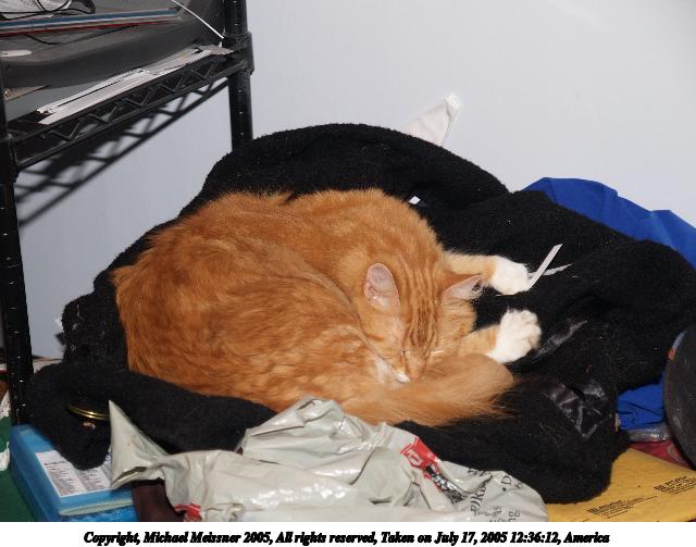 Picture #3: Protecting my catnip toy 480x686, 53,819 bytes (53K), (html file) Copyright, Michael Meissner 2005, All rights reserved Olympus E-1 camera with Olympus 14-54mm f/2.8-3.5 lens f/3.4, ISO 800, 1/40 sec, 44.0mm, auto mode, SHQ, matrix metering, +2 sharpening 35mm equivalent focal length 88.0mm Taken by Michael Meissner on July 16, 2005 10:39:56 Last modified on July 16, 2005 at 12:32 |
