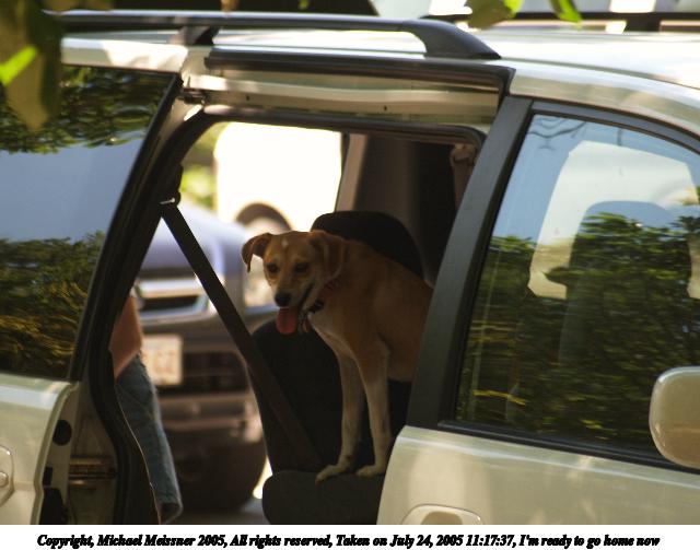 Picture #11: I'm ready to go home now 640x503, 54,110 bytes (53K), (html file) Copyright, Michael Meissner 2005, All rights reserved Olympus E-1 camera with Sigma 55-200mm f/4.0-5.6 lens f/5.6, ISO 100, 1/60 sec, 200.0mm, auto mode, SHQ, matrix metering, +2 sharpening 35mm equivalent focal length 401.0mm Taken by Michael Meissner on July 24, 2005 11:17:37 Last modified on July 24, 2005 at 17:37 |
