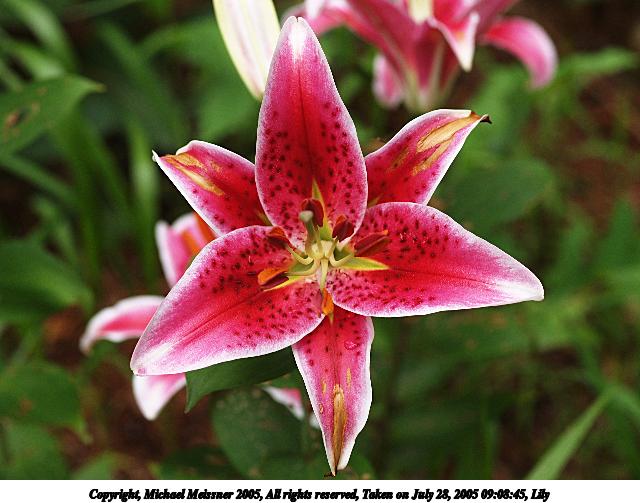 Picture #8: Lily #4 874x678, 59,021 bytes (58K), (html file) Copyright, Michael Meissner, 2005, All Rights Reserved Olympus E-1 camera with Olympus 50mm f/2.0 lens f/2.2, ISO 100, 1/125 sec, 50.0mm, auto mode, SHQ, matrix metering 35mm equivalent focal length 100.0mm Taken by Michael Meissner on July 12, 2005 12:20:25 Last modified on July 12, 2005 at 20:28 Processed from the RAW file. |