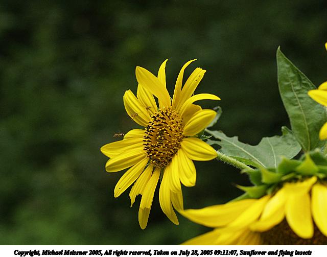 Picture #20: Sunflower and flying insects 640x503, 53,928 bytes (53K), (html file) Copyright, Michael Meissner 2005, All rights reserved Olympus E-1 camera with Olympus 50mm f/2.0 lens f/4.0, ISO 100, 1/160 sec, 50.0mm, aperture priority, SHQ, matrix metering, +2 sharpening 35mm equivalent focal length 100.0mm Taken by Michael Meissner on July 28, 2005 09:11:07 Last modified on July 28, 2005 at 09:24 |