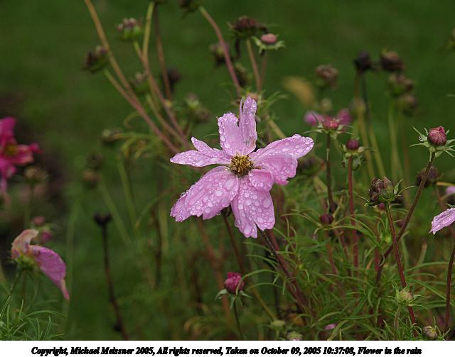 Picture #104: Flower in the rain #2 640x503, 55,038 bytes (54K), (html file) Copyright, Michael Meissner 2005, All rights reserved Olympus E-1 camera with Olympus 14-54mm f/2.8-3.5 lens f/4.5, ISO 100, 1/200 sec, 54.0mm, auto mode, SHQ, matrix metering, +2 sharpening 35mm equivalent focal length 108.0mm Taken by Michael Meissner on October 09, 2005 10:37:08 Last modified on October 09, 2005 at 18:27 |
