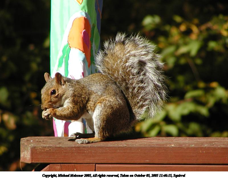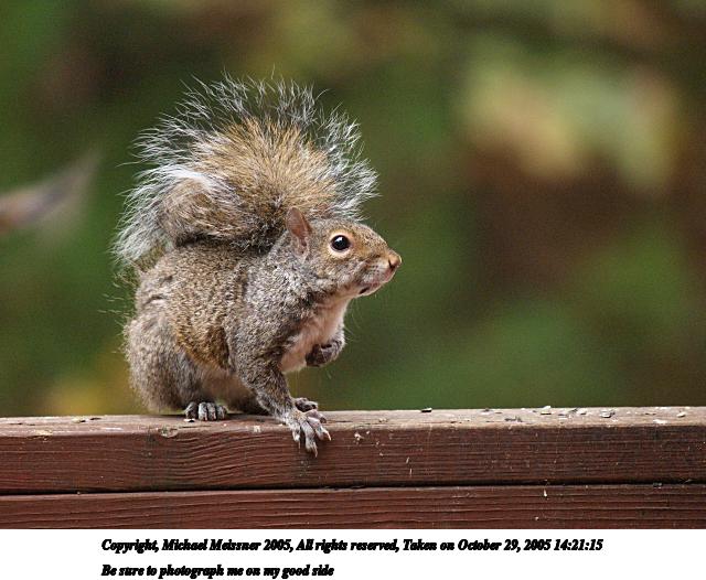Picture #97: Squirrel 800x623, 85,832 bytes (84K), (html file) Copyright, Michael Meissner 2005, All rights reserved Olympus C-2100UZ camera f/4.0, ISO 100, 1/800 sec, 70.0mm, auto mode, SHQ, cloudy, matrix metering 35mm equivalent focal length 388.0mm Taken by Michael Meissner on October 05, 2005 11:46:15 Last modified on October 15, 2005 at 23:15 |