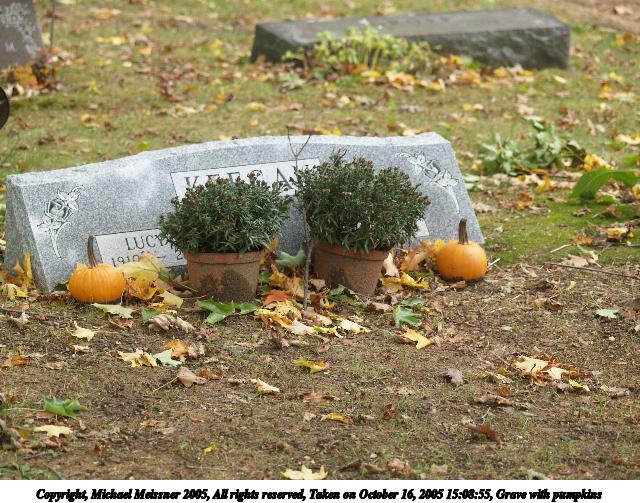 Picture #71: Grave with pumpkins 640x503, 105,213 bytes (103K), (html file) Copyright, Michael Meissner 2005, All rights reserved Olympus E-1 camera with Olympus 50-200mm f/2.8-3.5 lens f/2.8, ISO 100, 1/60 sec, 67.0mm, auto mode, SHQ, matrix metering, +2 sharpening 35mm equivalent focal length 134.0mm Taken by Michael Meissner on October 16, 2005 15:08:55 Last modified on October 16, 2005 at 21:28 |