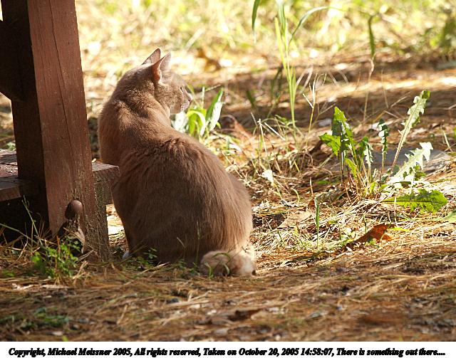 Picture #58: There is something out there.... 640x503, 98,545 bytes (97K), (html file) Copyright, Michael Meissner 2005, All rights reserved Olympus E-1 camera with Olympus 50-200mm f/2.8-3.5 lens f/4.5, ISO 400, 1/320 sec, 200.0mm, auto mode, SHQ, matrix metering, +2 sharpening, continous focus 35mm equivalent focal length 401.0mm Taken by Michael Meissner on October 20, 2005 14:58:07 Last modified on October 20, 2005 at 16:02 |