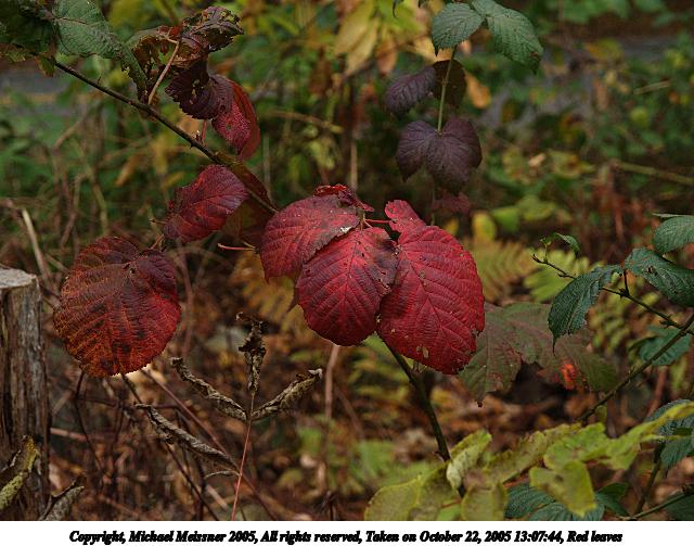 Picture #44: Red leaves #2 640x503, 69,978 bytes (69K), (html file) Copyright, Michael Meissner 2005, All rights reserved Olympus E-1 camera with Olympus 14-54mm f/2.8-3.5 lens f/4.0, ISO 200, 1/160 sec, 44.0mm, auto mode, SHQ, spot metering, +2 sharpening 35mm equivalent focal length 88.0mm Taken by Michael Meissner on October 22, 2005 13:07:01 Last modified on October 22, 2005 at 19:35 |
