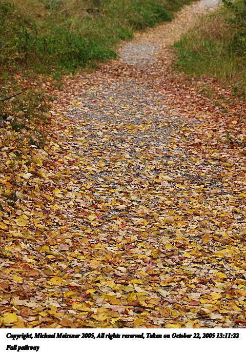 Picture #41: Fall pathway 480x686, 138,862 bytes (136K), (html file) Copyright, Michael Meissner 2005, All rights reserved Olympus E-1 camera with Olympus 50-200mm f/2.8-3.5 lens f/4.0, ISO 200, 1/200 sec, 50.0mm, auto mode, SHQ, spot metering, +2 sharpening 35mm equivalent focal length 100.0mm Taken by Michael Meissner on October 22, 2005 13:11:22 Last modified on October 22, 2005 at 19:35 |