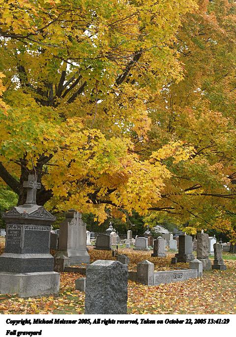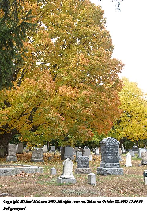 Picture #33: Fall graveyard #3 480x686, 121,016 bytes (119K), (html file) Copyright, Michael Meissner 2005, All rights reserved Olympus E-1 camera with Olympus 14-54mm f/2.8-3.5 lens f/4.0, ISO 200, 1/100 sec, 31.0mm, auto mode, SHQ, spot metering, bias -0.7, +2 sharpening, Exposure bracketing (shot 2) 35mm equivalent focal length 62.0mm Taken by Michael Meissner on October 22, 2005 13:43:20 Last modified on October 22, 2005 at 19:36 |