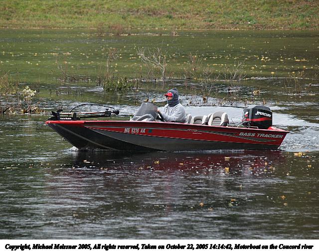 Picture #28: Motorboat on the Concord river 640x503, 96,348 bytes (95K), (html file) Copyright, Michael Meissner 2005, All rights reserved Olympus E-1 camera with Olympus 50-200mm f/2.8-3.5 lens f/4.5, ISO 200, 1/320 sec, 182.0mm, auto mode, SHQ, matrix metering, +2 sharpening 35mm equivalent focal length 365.0mm Taken by Michael Meissner on October 22, 2005 14:14:42 Last modified on October 22, 2005 at 19:36 |
